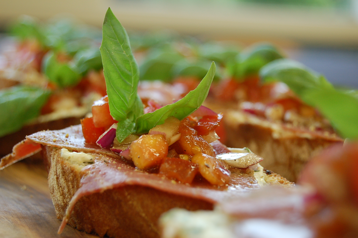 Bruschetta met Pastrami en Tomaat